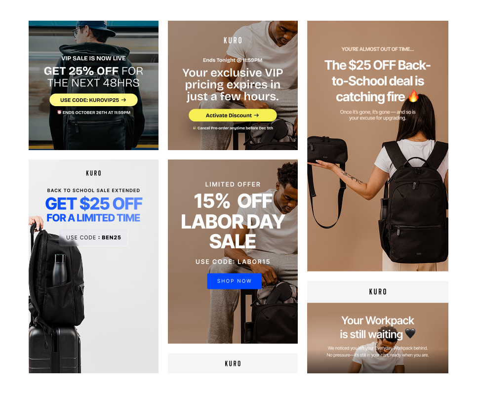 Social content, landing pages, emails, and ads designed to tell the Kuro Essential’s story.