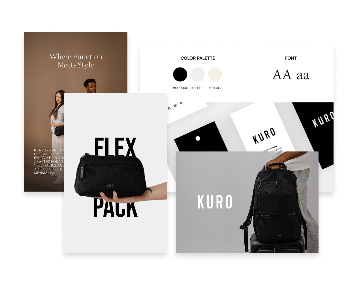 A full brand system with logo, packaging, and posters, crafted to reflect Kuro’s premium, minimalist identity.
