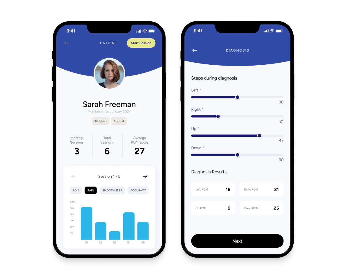 A physiotherapy app designed to help therapists track patient movement in real time.