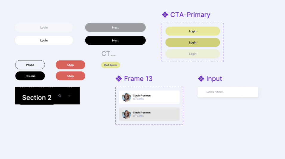 Each UI component was designed with adaptability in mind — sliders, input fields, session cards, patient lists, and configuration modules could all adjust based on the session stage.
